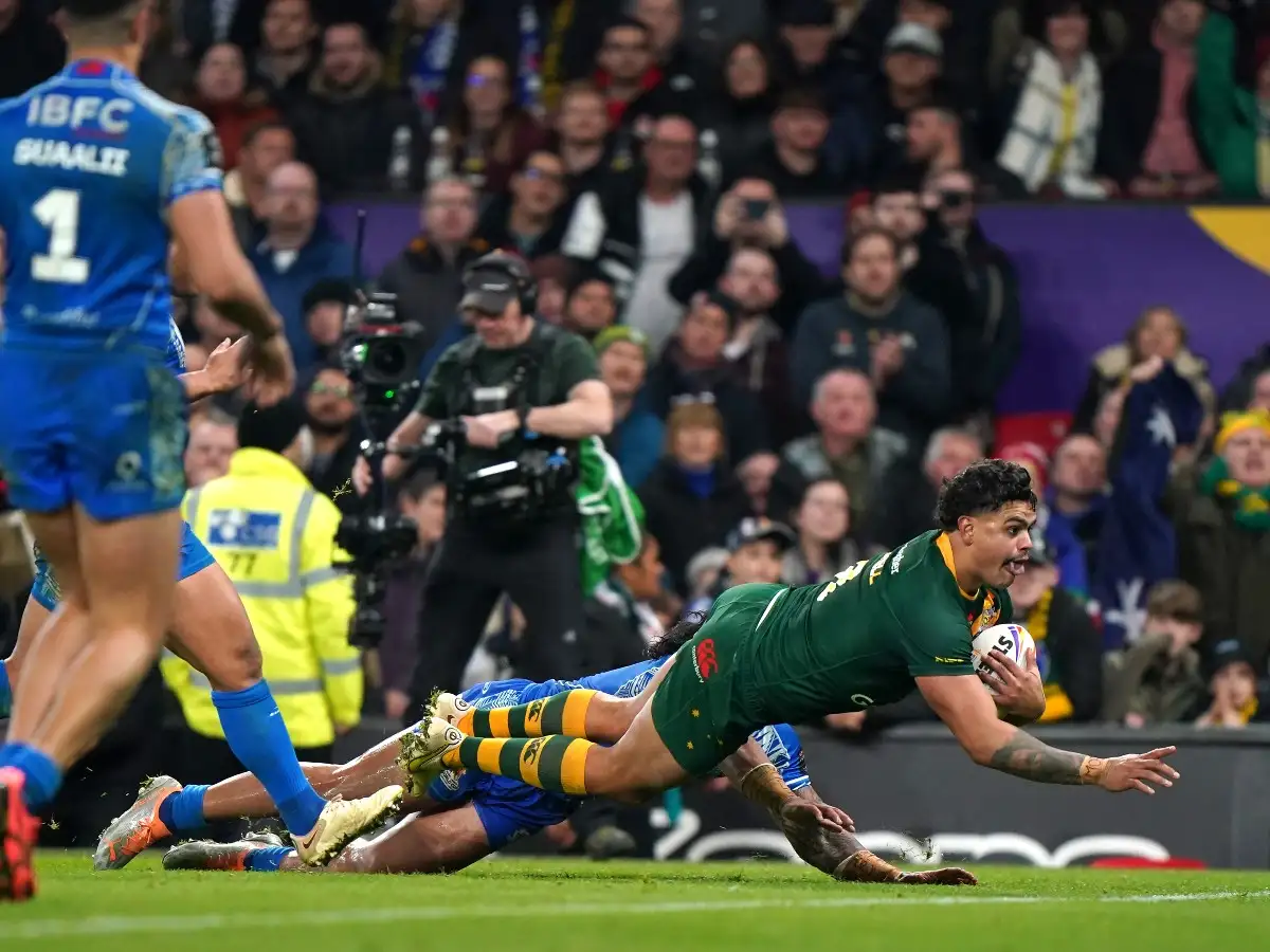 Australia star Latrell Mitchell has sent out a message to England following their World Cup victory, calling for Shaun Wane’s side to travel Down Under for a test next year.