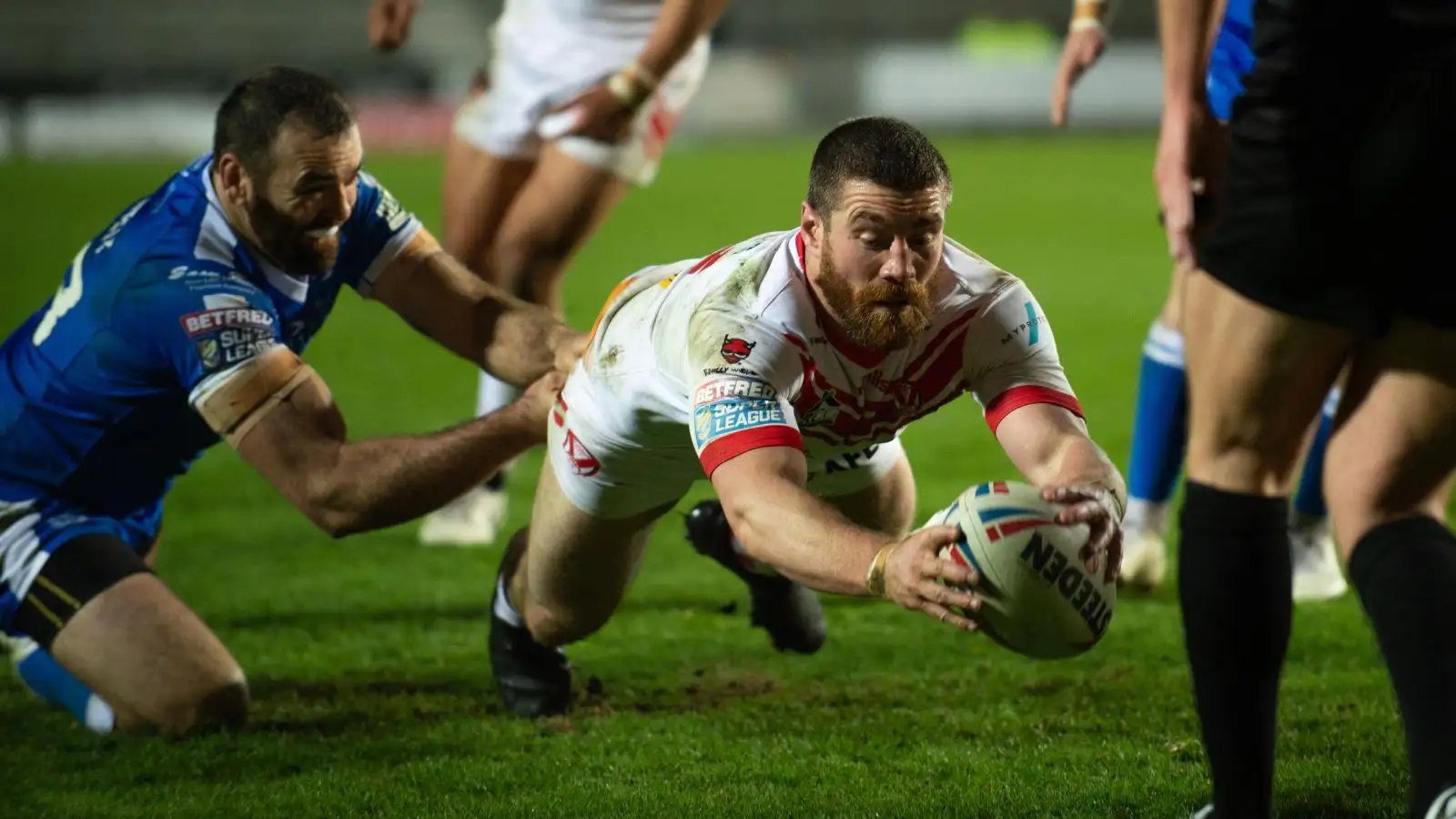March 2019: Kyle Amor dives over for a try as St Helens beat Hull KR 36-24 at the Totally Wicked Stadium
