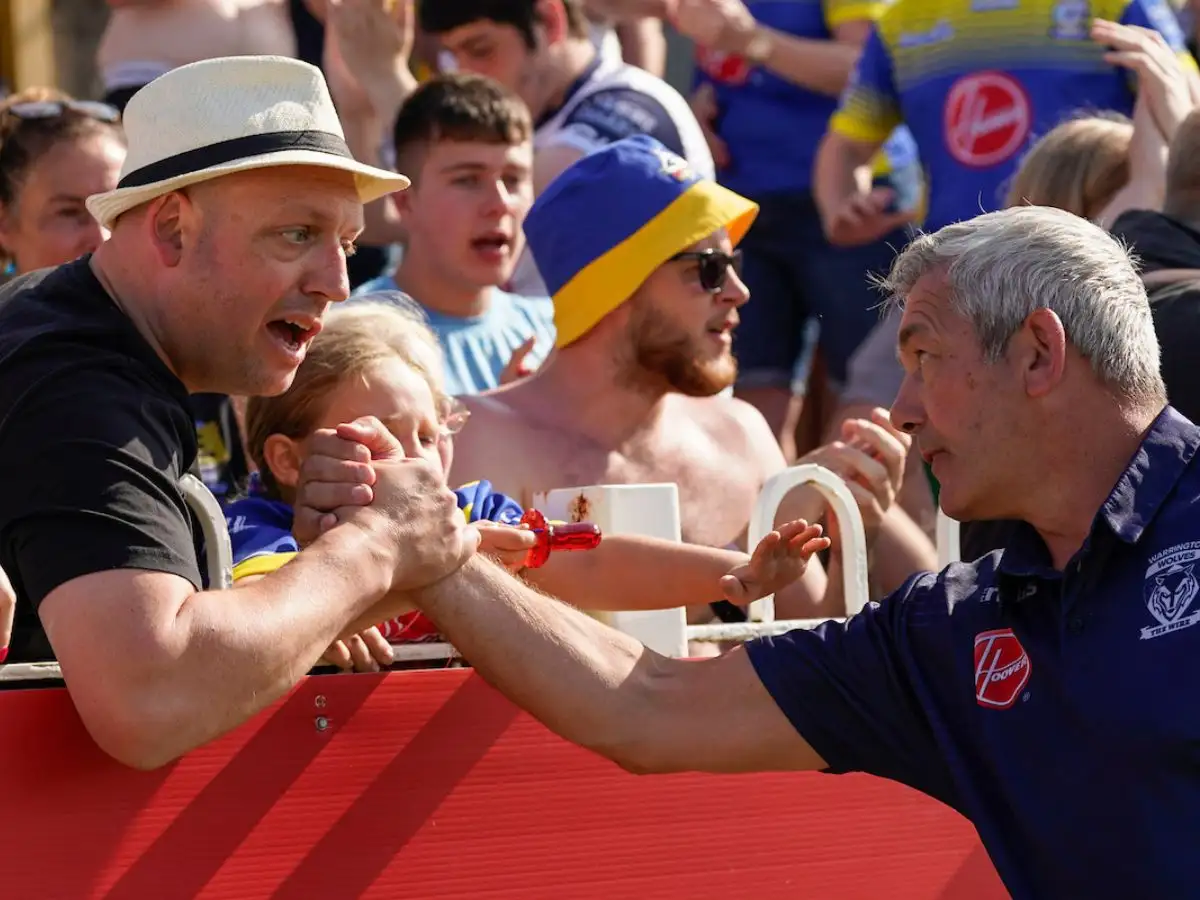 Daryl Powell speaks to travelling Warrington fans after Castleford defeat