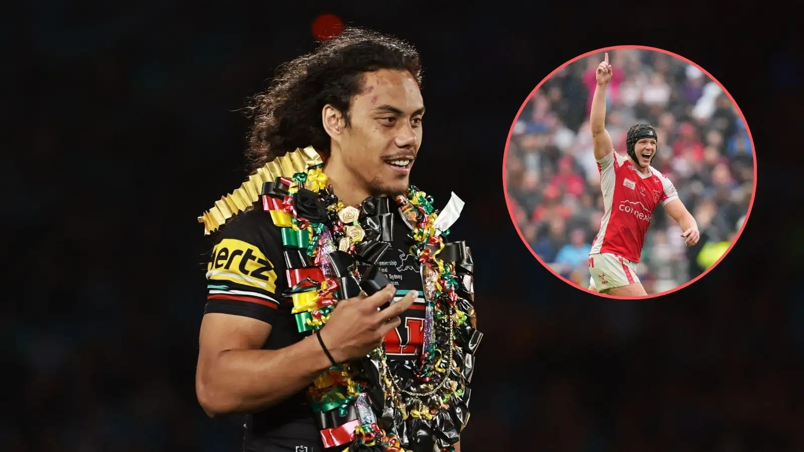Jarome Luai (Main Image) will miss the World Club Challenge against Wigan Warriors, with Penrith Panthers new boy & ex-Hull KR ace Brad Schneider (circle) set to replace him - Alamy
