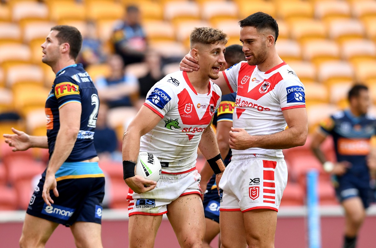 Ash Taylor gave Gold Coast an early lead with a penalty goal but it was the Dragons who scored the game’s opening try through Zac Lomax in the 17th minute.