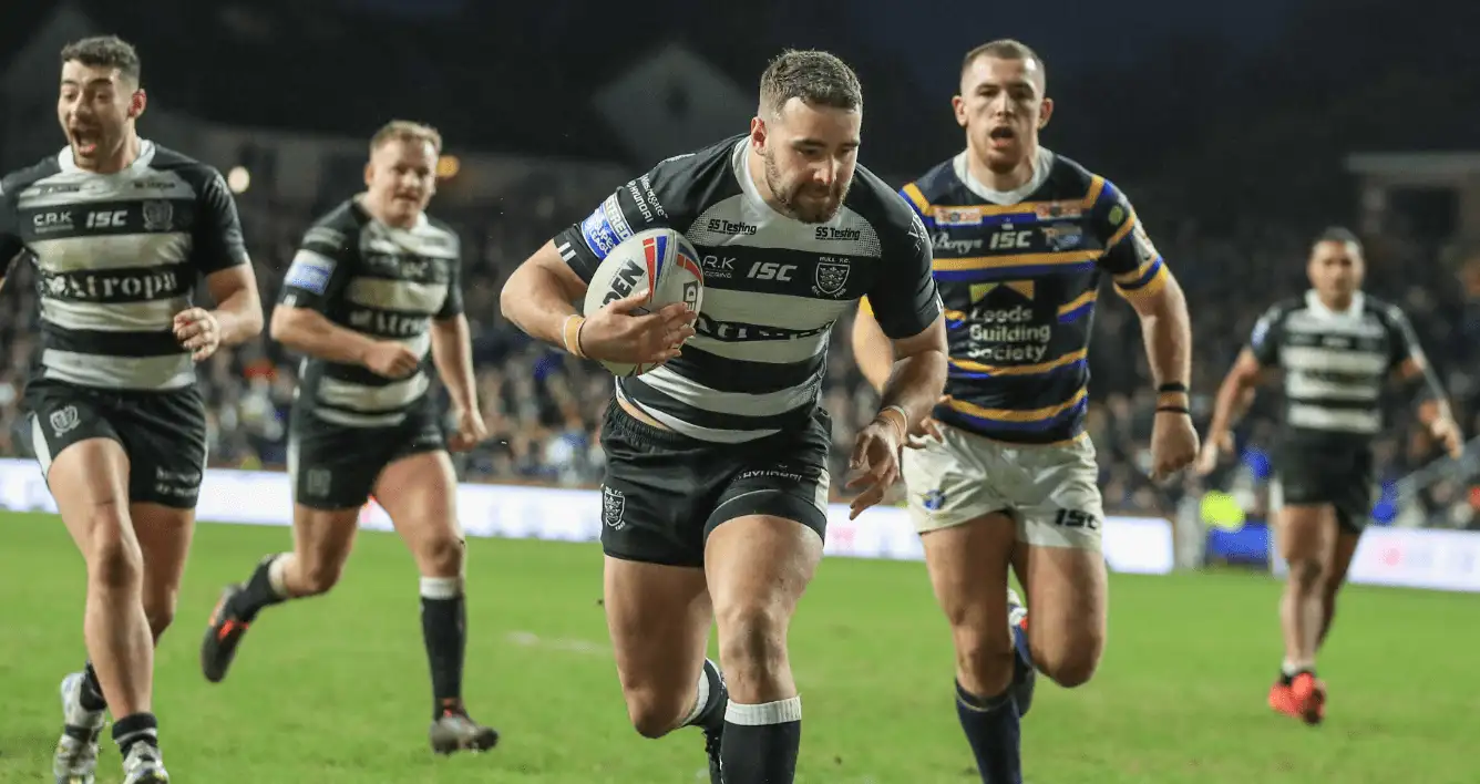 FC were looking increasingly dangerous and extended their lead in the 31st minute when full-back Jamie Shaul kept the ball alive to enable stand-off Jake Connor to go through a gaping hole on Leeds’ left edge and put Naulago over out wide for his first try.