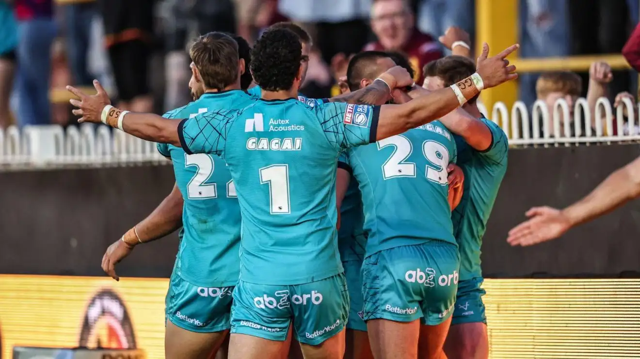 Huddersfied Giants celebrate a try in 2025