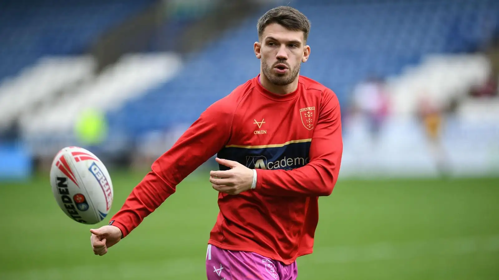 Hull KR's Oliver Gildart warms up ahead of a game in 2024