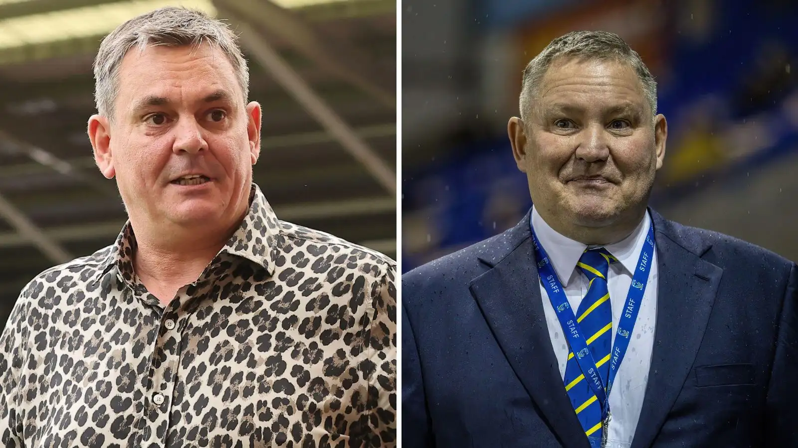 Leigh Leopards owner Derek Beaumont (left) & Warrington Wolves chairman Stuart Middleton (right) - Alamy