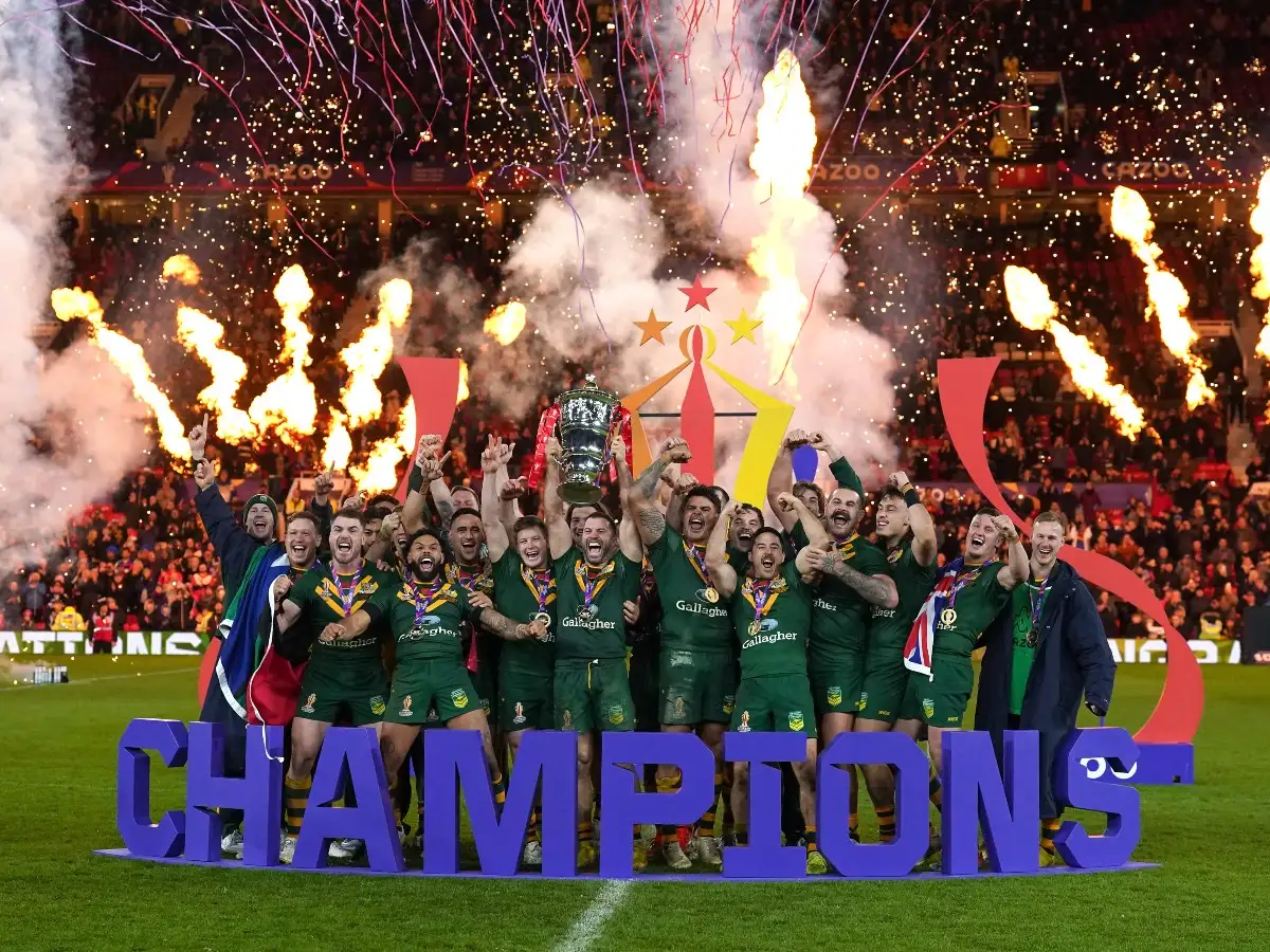 The Kangaroos won their third straight title with a 30-10 victory over Samoa at Old Trafford to secure the delayed 2021 World Cup in England.