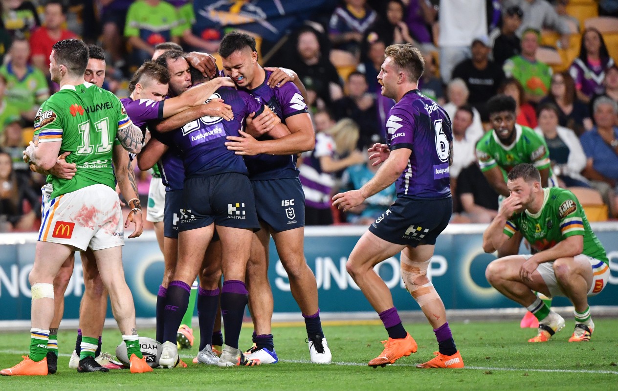 Dale Finucane put the game out of reach for the Raiders on the hour, while Cotric got his second in the 71st minute – but his effort would prove only to be a consolation try for Canberra as Melbourne finished 30-10 winners in Brisbane.