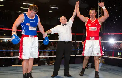 Paul Sculthorpe wins Rugger in the Ring boxing contest