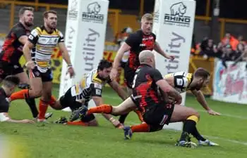 Dewsbury: Hyde, Buchanan, Pryce, Grady, Grabt, Wildie, Thackeray, Hepworth, Hemingway, Haggarty, Spicer, Hale, Farrell. Subs: Adamson, Morton, Godwin, Brown, Johnson, Smith, Aizue, Walford, Wood.