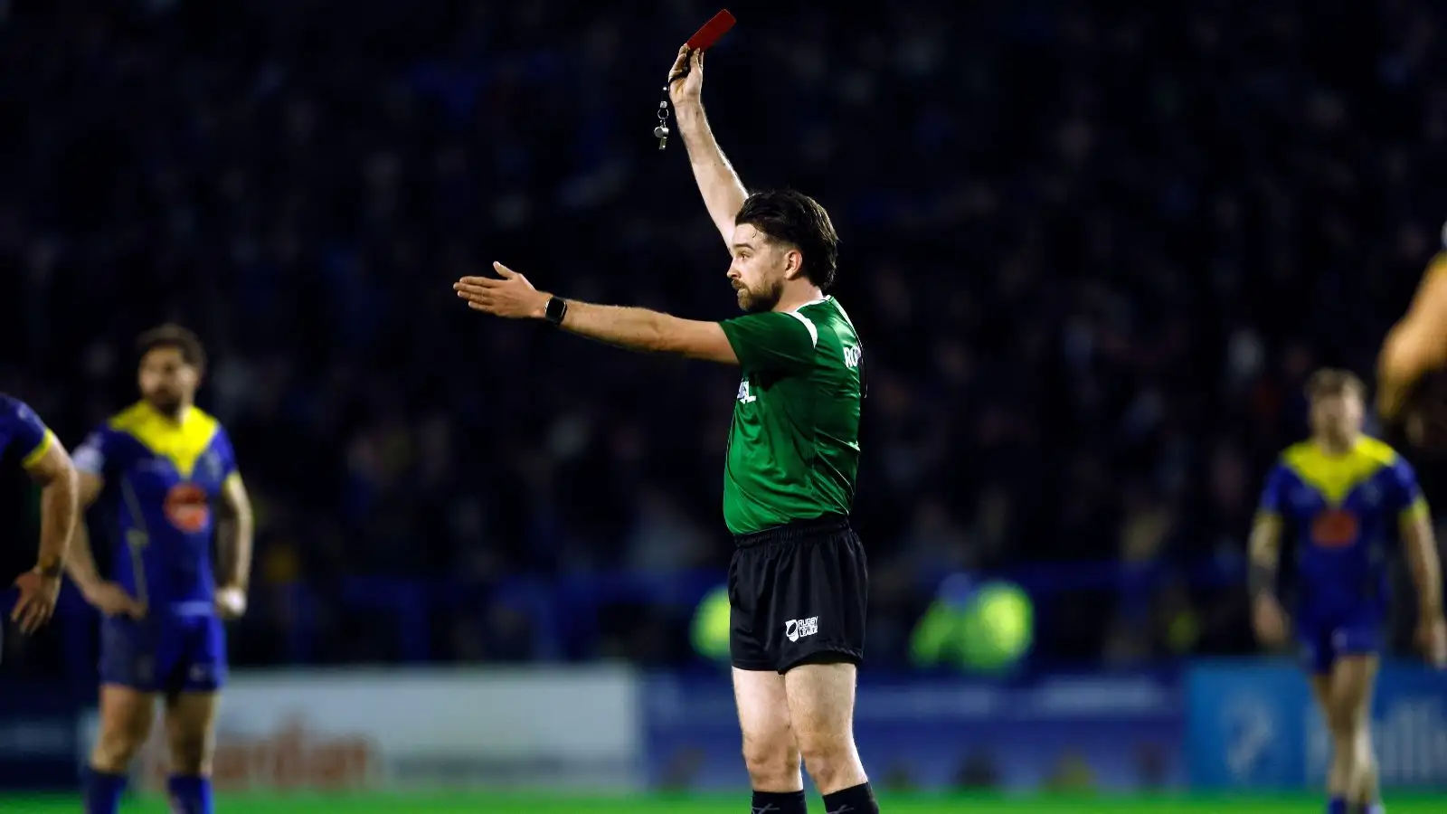 Referee Marcus Griffiths sends off Fa'amanu Brown in the first half of Hull FC's Round 2 defeat at Warrington Wolves