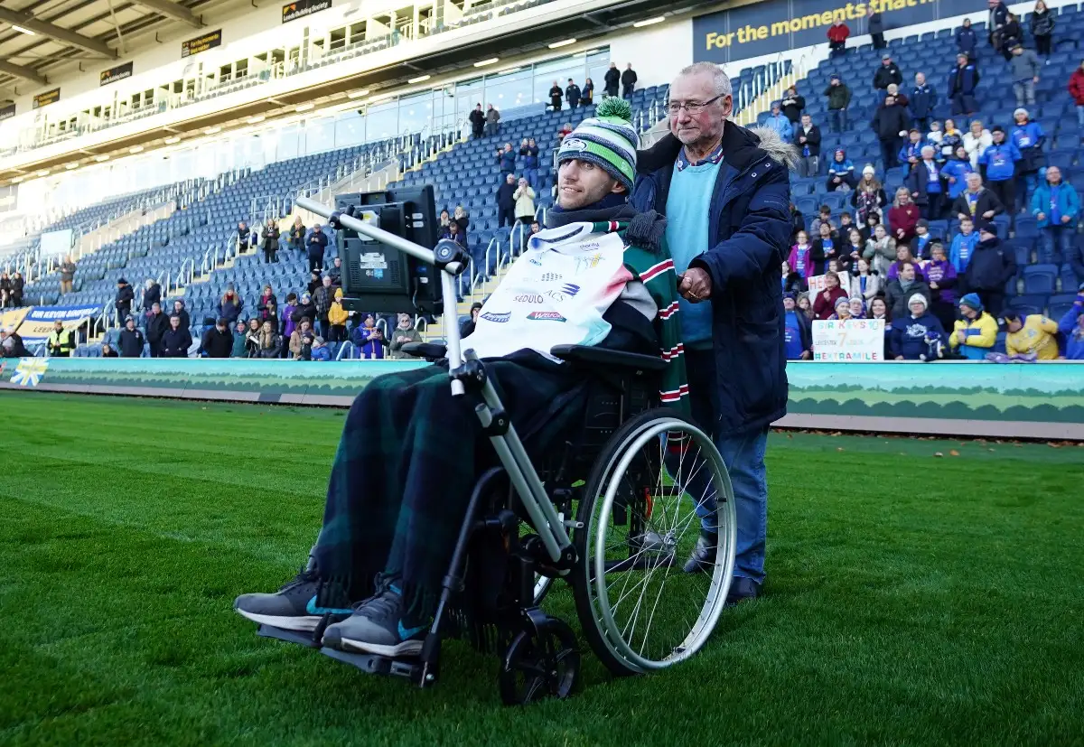 Rob Burrow, at Headingley Stadum, waits for Kevin Sinfield to complete the Extra Mile Challenge