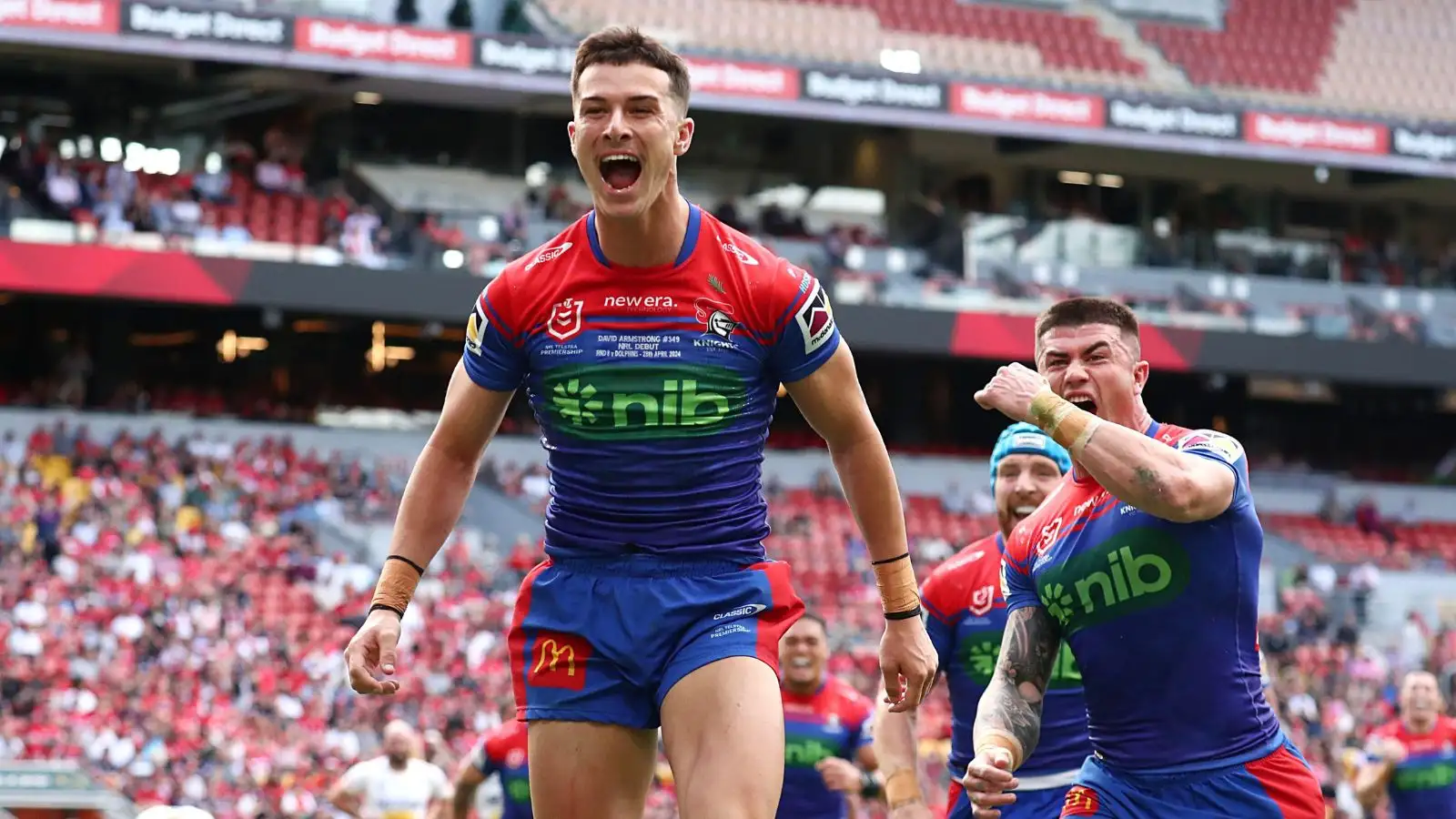 Armstrong, who joined the Knights back in 2022, has had to bide his time for this opportunity at first-grade level but has taken it with both hands – scoring five tries in his first four NRL appearances including a hat-trick against the Gold Coast Titans.