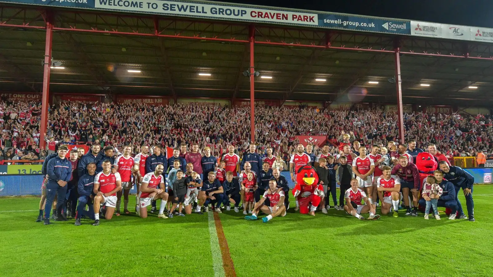 Hull KR team and staff in front of the fans following the Betfred Super League Round 26 match Hull KR vs Salford Red Devils. Photo by Craig Cresswell/News Images.