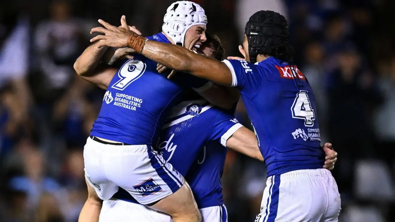 Canterbury Bulldogs players celebrate.