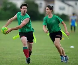 Tagging is done by pulling a Velcro attached tag from the shorts of the ball carrier. This makes the game more accessible to players of different genders, skill levels and sizes.