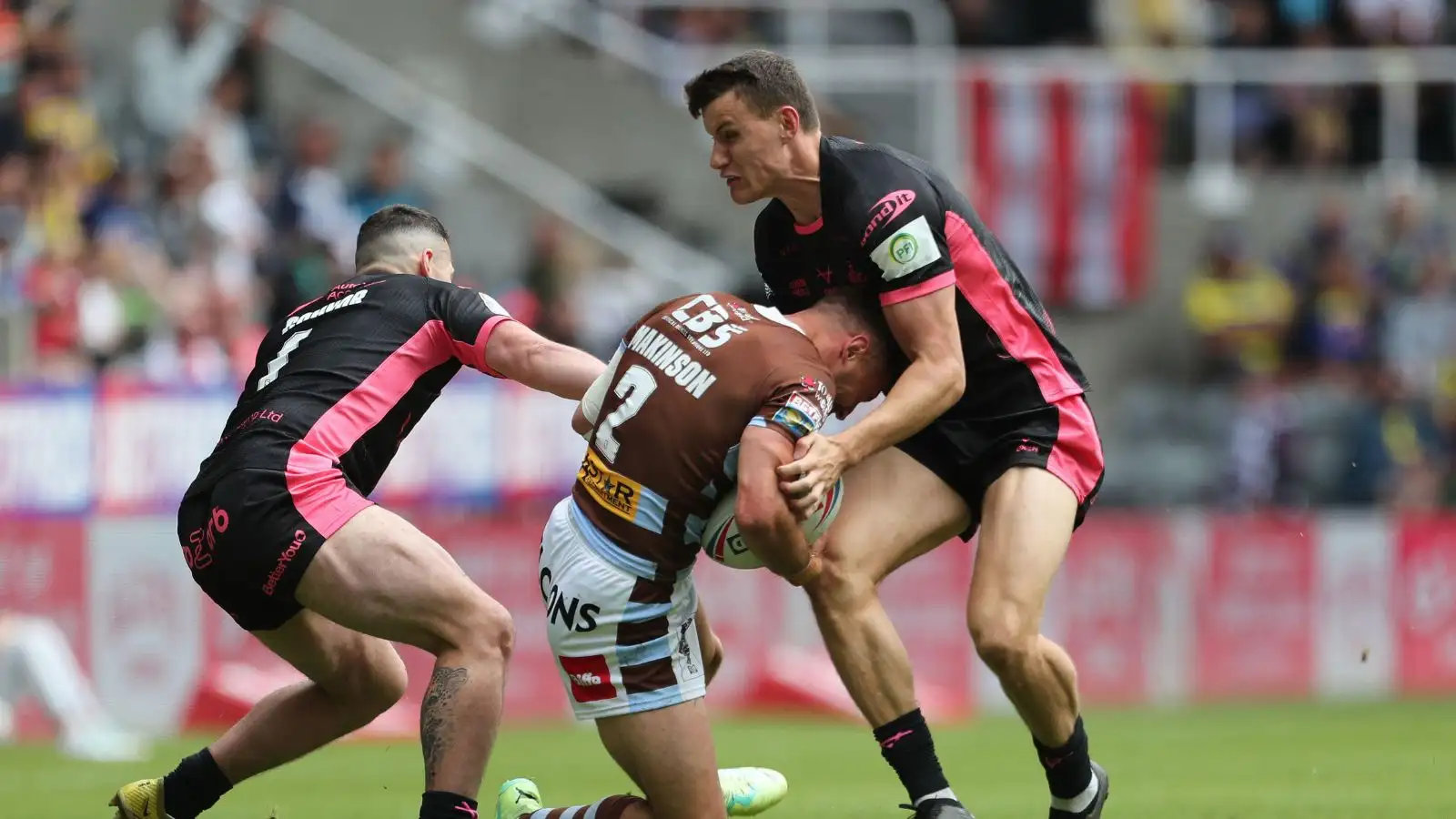 Innes Senior tackles Tommy Makinson during Super League's Magic Weekend. Photo by Mark Fletcher | MI News.