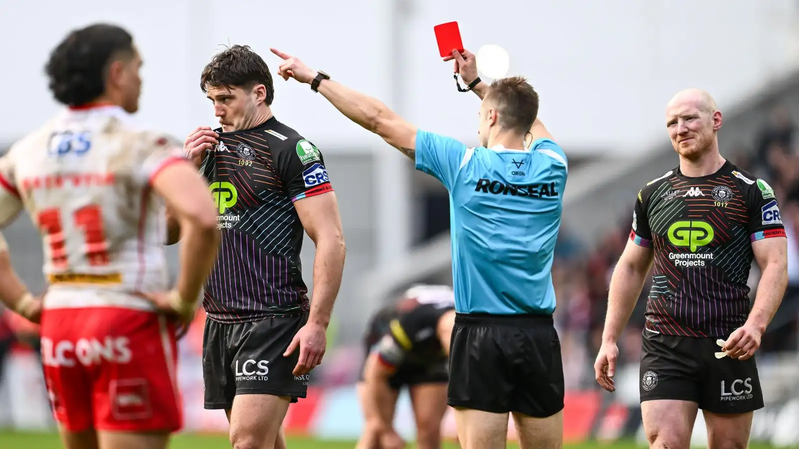 The Ireland international was dismissed by referee Chris Kendall with circa 18 minutes of the Rivals Round clash remaining at the Totally Wicked Stadium having caught Mark Percival with a high shot, and was hit with a Grade E head contact charge.